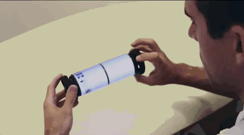 不過關於行動設備未來的形態,有人給出了一個更大膽的答案。最近加拿大皇后大學(Queen's University)的科研團隊發佈了一款可滾動觸控螢幕平板電腦,可以像捲軸一樣捲起來。